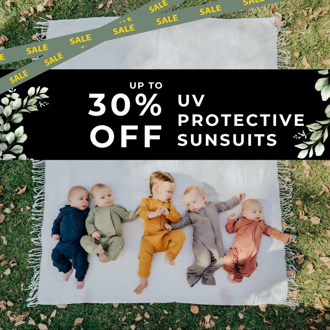 Give your baby all day protection with our extra long full-body UV protective sunsuits, with a loose fit for better airflow on hot days.